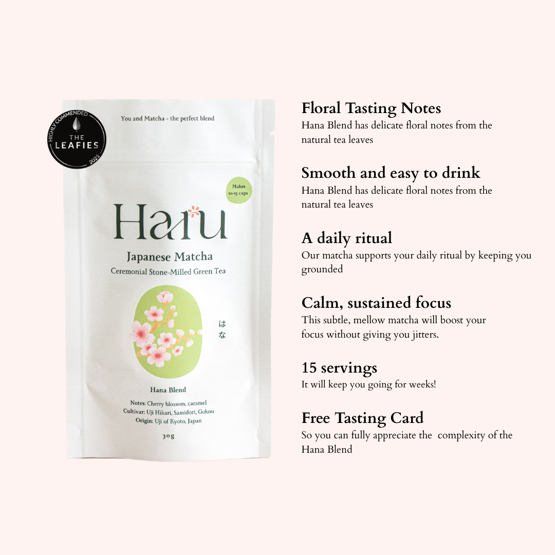 This is our favourite matcha for a ritual. A slow morning whisk or an afternoon reset, Hana Blend creates a pause a moment of calm before the day moves on.
